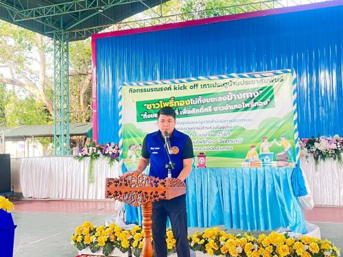 นายพิสิษฐ์ วิระขันคำ นายอำเภอโพธิ์ทอง พร้อมด้วยหัวหน้าส่วนราชการระดับอำเภอ ผู้อำนวยการโรงเรียนโพธิ์ทองจินดามณี ผู้อำนวยการศูนย์ส่งเสริมการเรียนรู้ ระดับอำเภอโพธิ์ทอง เทศบาลตำบลโพธิ์ทอง องค์การบริหารส่วนตำบลอ่างแก้ว กำนัน ผู้ใหญ่บ้าน และอสม.ตำบลอ่างแก้ว ร่วมขับเคลื่อนกิจกรรมรณรงค์ Kick off เคาะประตูบ้านประชาสัมพันธ์ “ ชาวโพธิ์ทองไม่ทิ้งขยะลงข้างทาง ” เพื่อสร้างวินัยให้คนในชุมชนรู้จักการจัดการขยะ ณ อาคารโดม 57 ปี จินดามณี โรงเรียนโพธิ์ทอง “จินดามณี” ตำบลอ่างแก้ว อำเภอโพธิ์ทอง จังหวัดอ่างทอง โดยกิจกรรมในวันนี้ มีการเดินรณรงค์บริเวณตลาดโพธิ์ทอง