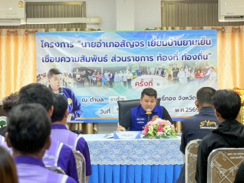 นายพิสิษฐ์ วิระขันคำ นายอำเภอโพธิ์ทอง พร้อมด้วยหัวหน้าส่วนราชการ ผู้บริหารองค์การบริหารส่วนตำบลยางช้าย กำนัน ผู้ใหญ่บ้าน ผู้ช่วยผู้ใหญ่บ้าน สารวัตรกำนัน แพทย์ประจำตำบล และอสม. ร่วมขับเคลื่อนโครงการ “นายอำเภอสัญจร เยี่ยมบ้าน ยามเย็น เชื่อมความสัมพันธ์ ส่วนราชการ ท้องที่ ท้องถิ่น” ณ ห้องประชุมองค์การบริหารส่วนตำบลยางช้าย อำเภอโพธิ์ทอง จังหวัดอ่างทอง โดยได้รับความอนุเคราะห์จากท่านประภา ชุ่นหคาม นายกองค์การบริหารส่วนตำบลยางช้าย โดยกิจกรรมหลังจากการประชุม ได้ลงพื้นที่มอบของให้กับครัวเรือนเปราะบาง จำนวน 2 หลัง